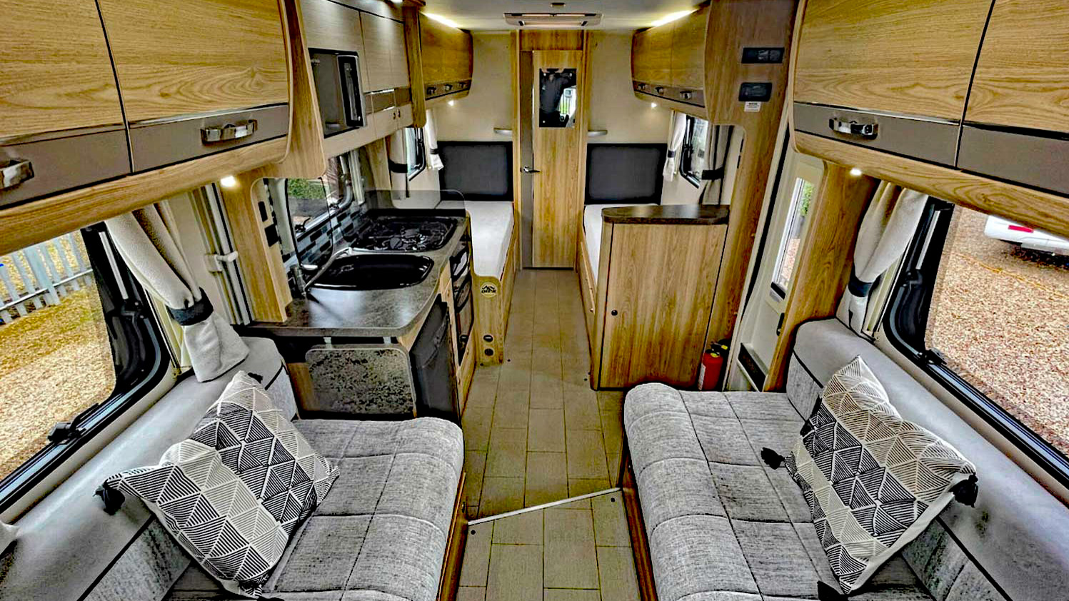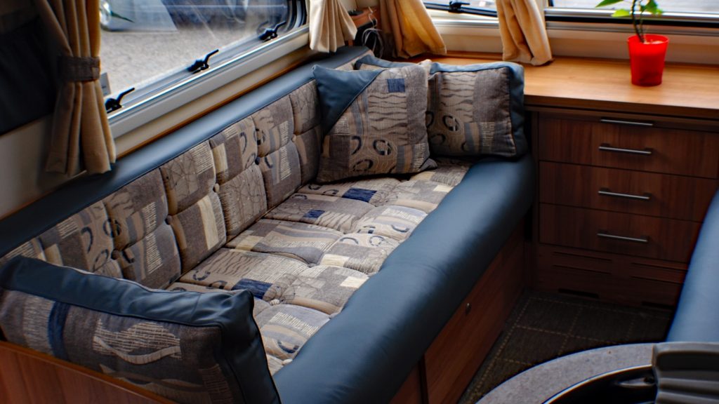 We had replaced the upholstery on a caravan some years ago at Regal Furnishing Ltd and was very pleased with the result. When we sold that caravan three years or so later after living in it full time and travelling Europe it still looked good and felt very comfortable, the only drawback was it had cost an arm and a leg. They still have pictures of our caravan with it’s new upholstery on their site one of which I have included below.