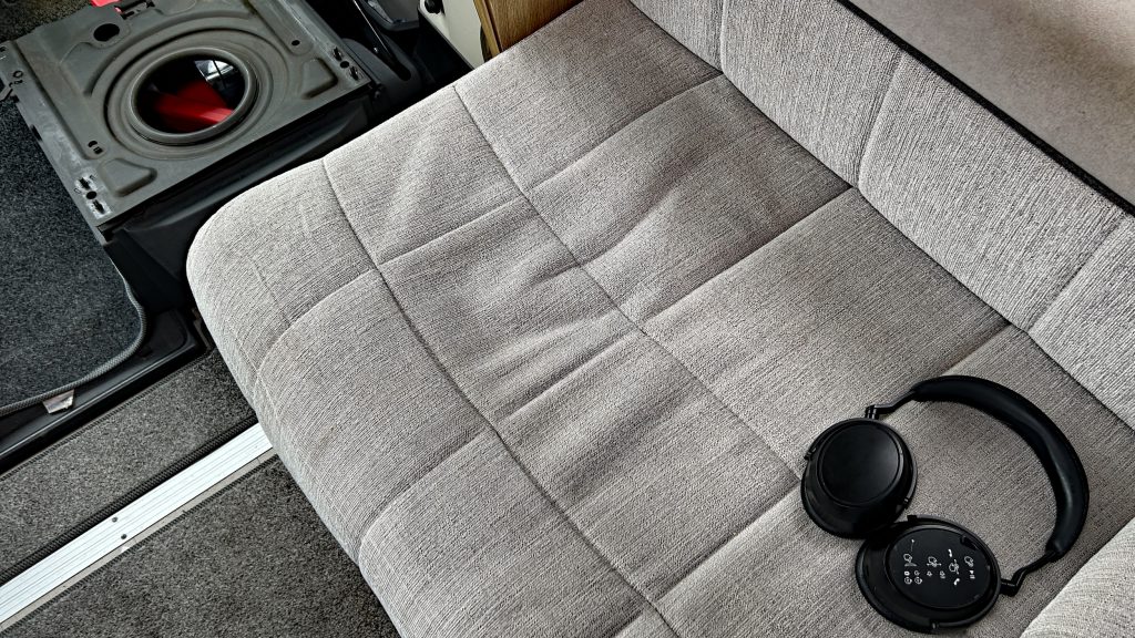 When we bought the motorhome we assumed a previous owner was, erm! a touch heavy, as one seat on each of the two sofas had a slight “bum depression”. The depression seemed slight and the foam was still supportive, sadly no one would describe either of us as lightweight so it was not long before the “bum depression” became so deep you could feel the framing under the cushions, we thought perhaps we would replace the foam without replacing the covers but as the foam deteriorated the fabric distorted more and more.