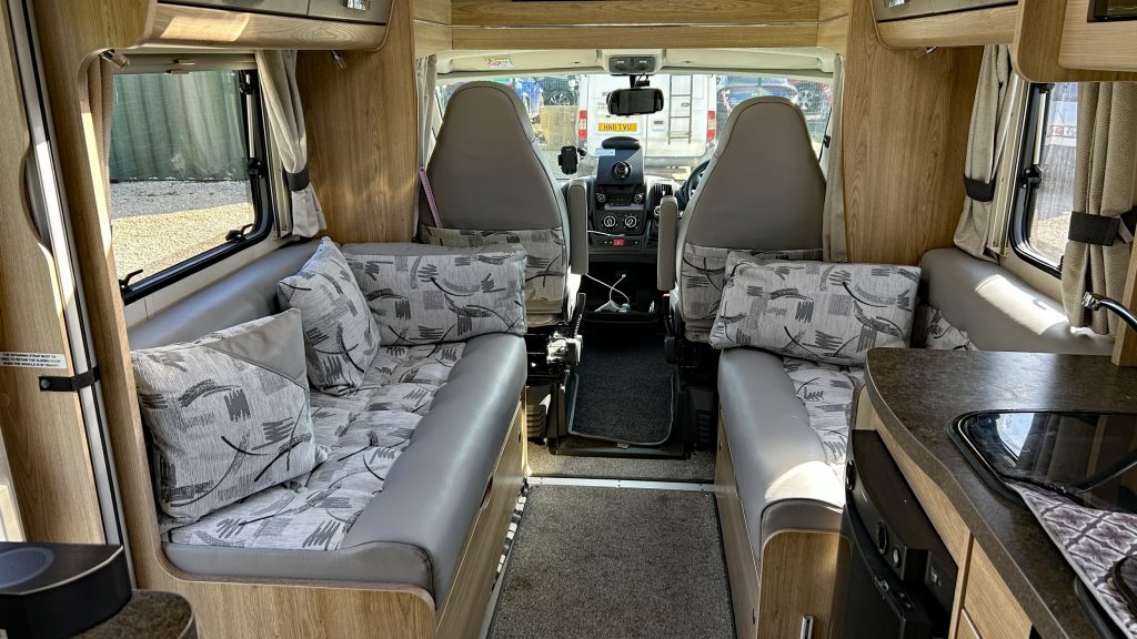 Having learned the hard way that “if you pay peanuts you get monkeys” we went back to Regal Furnishing for a quote to replace all the upholstery and recover the driver and passenger seats (when swivelled round they form part of the lounge furniture) this time the cost was two arms and two legs but we felt that at Regal Furnishing we would get top quality materials and top quality workmanship for the manufacture and install.