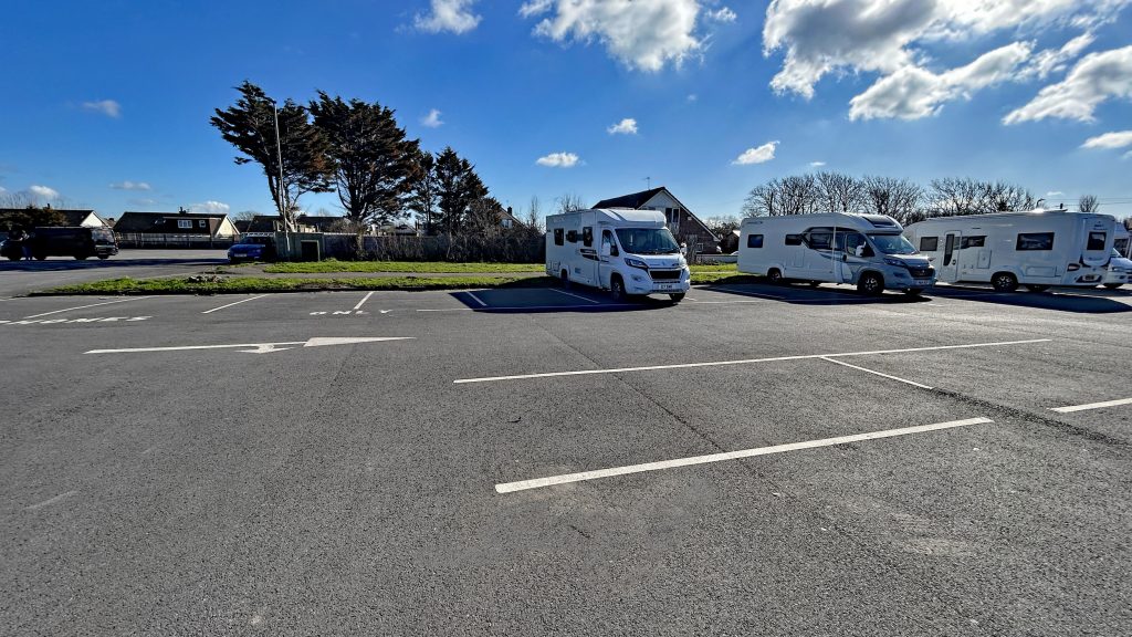 We stopped at the nearest seaside town – Burnham on Sea – where the local municipal car park had a complete row of large spaces marked for motorhomes only. Sadly they were also marked with a large no sleeping overnight sign.
