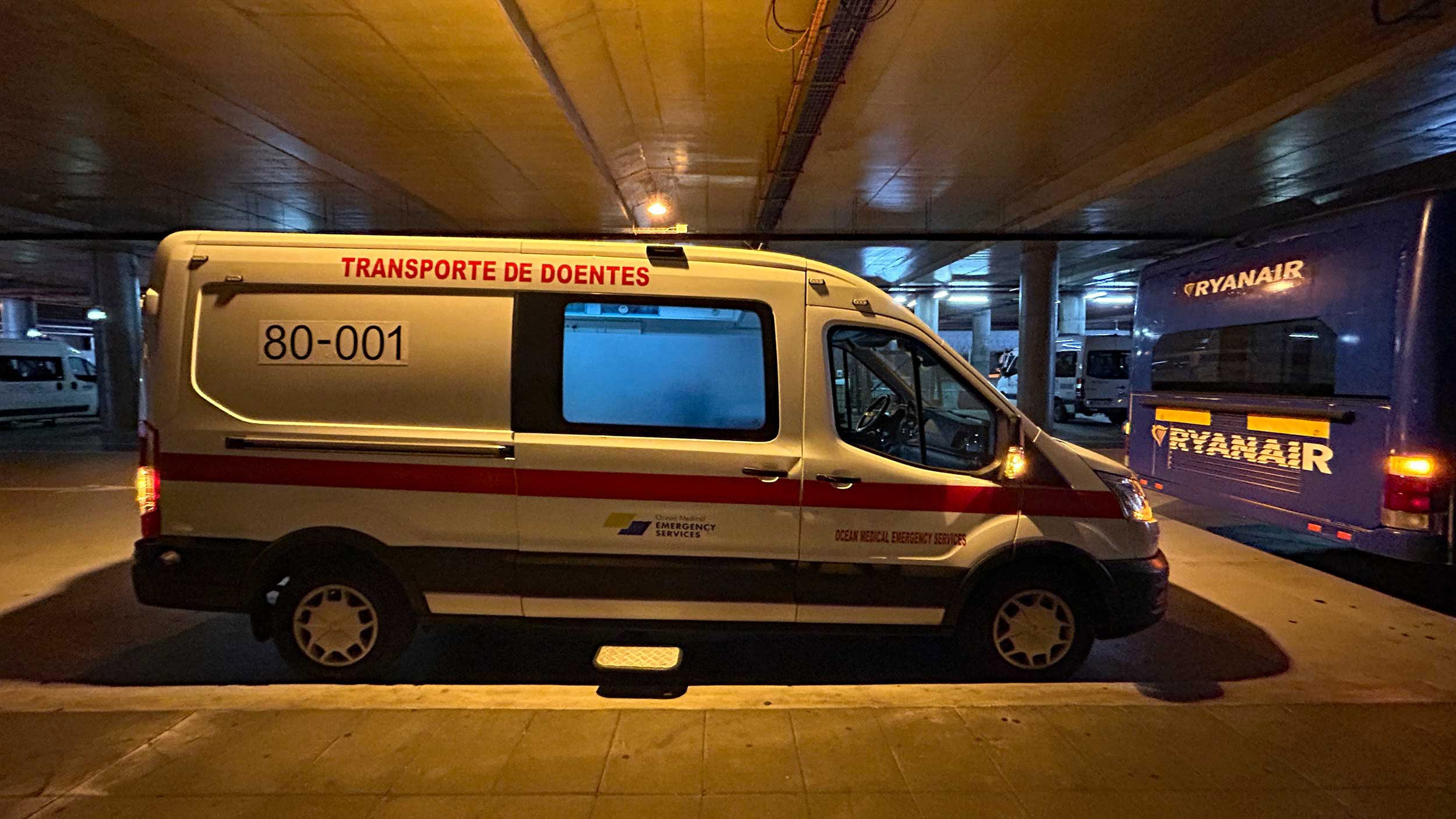 On arrival at Lisbon Airport Sue went base over apex. Long story short – the bus (operated by Ryanair) transporting passengers from the plane to the arrivals hall stopped to drop us of in an area where the lighting was defective, when Sue tripped over in the half light Ryanair insisted on an ambulance being called, they tried to insist she be taken to A&E for a full examination but after a thorough examination in the ambulance the crew dressed her head wound and decreed that although she would have two black eyes and a headache an A&E visit was unnecessary. Amazing how attentive Ryaniar can be when they see the possibility of being on the expensive end of a negligence lawsuit.