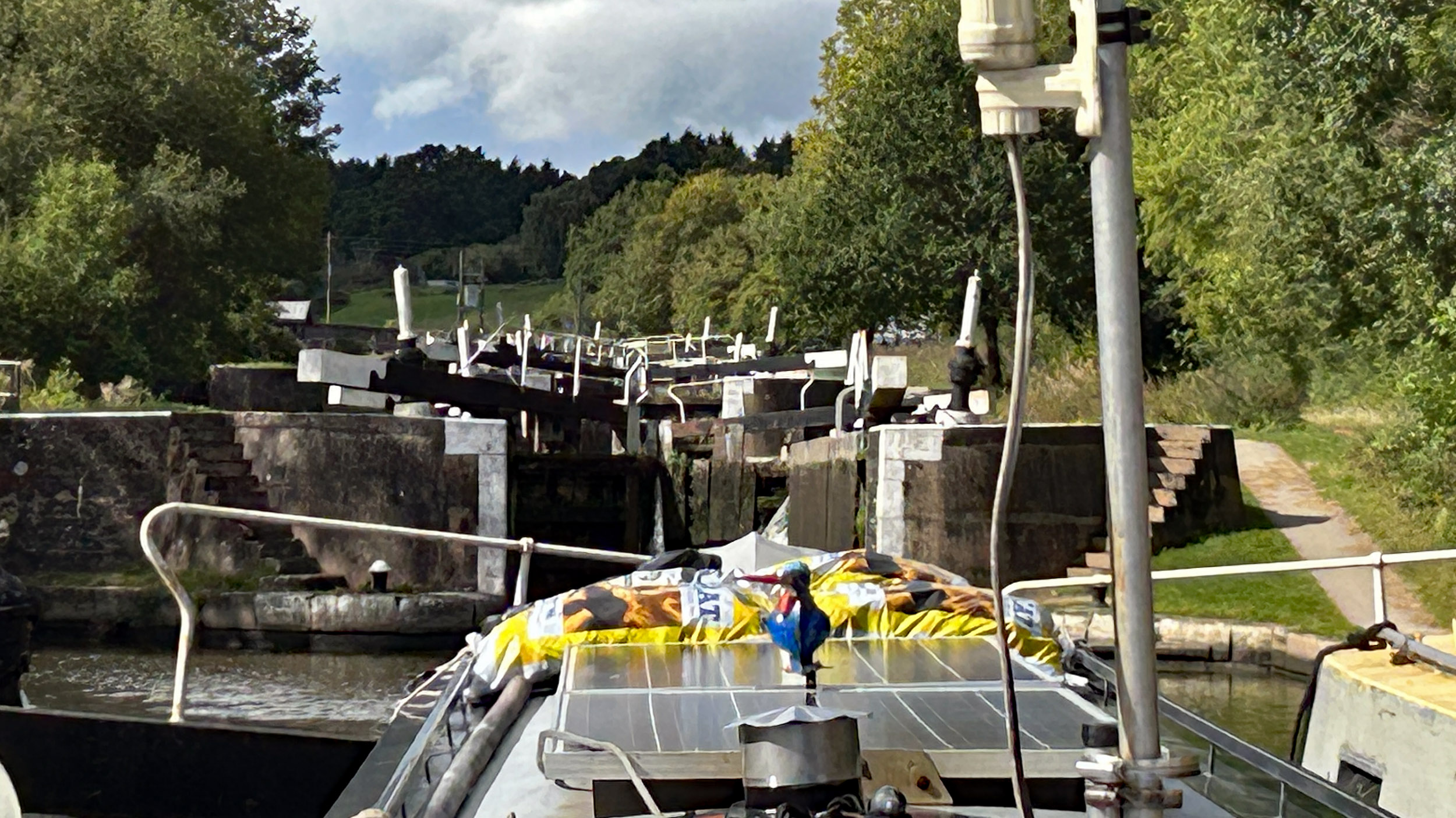 The first twenty one of the locks comprise the Hatton Flight also known as the “stairway to heaven” due to the difficulty of the wide lock flight. We were fortunate in that as we approached the bottom lock the skipper of a moored boat hailed us and asked if we were planning to ascend the flight and if so could she – a single hander join us for the assent, we agreed and Joyce a live aboard teacher joined us in the first lock. Mark was on winch handle duty and closed the lock behind us, opened the paddles, ran to the next lock, which was set for us so he opened the gates came back opened the gates on our lock and set about closing the paddles. I took NB Fantasma into the next lock and waited for Joyce to join me, once out of the first lock Mark would close the gates and come to the lock we were now in and the whole process would repeat, except that Joyce did not bring her boat out of the first lock and into the second. The wait seemed interminable but eventually Joyce slowly appeared and piloted her boat into the second lock followed quickly by Mark who started operating the lock.
