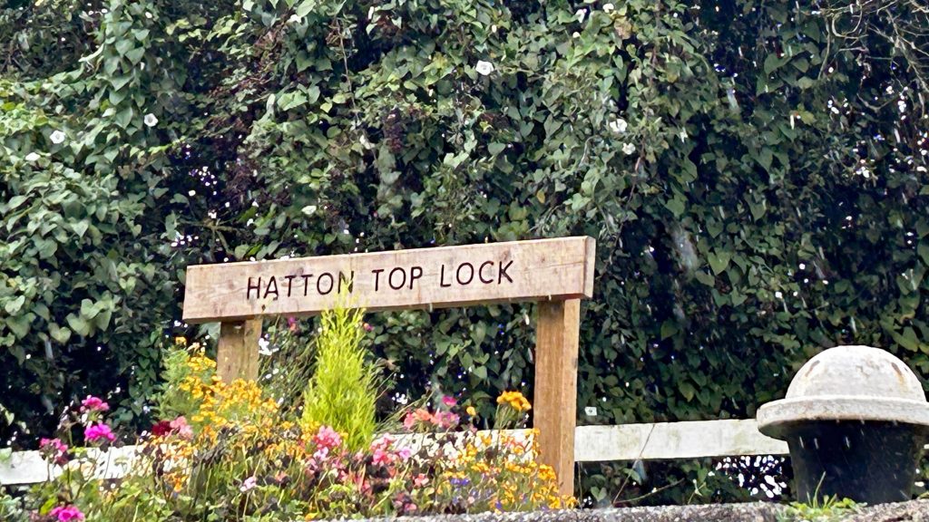 After operating seven locks Joyce swapped places with Mark and did the next seven and after that we swapped around again and I did the next six with Joyce insisting she do the very last in the flight while Mark and I piloted the two boats to the Hatton Flight visitor moorings.